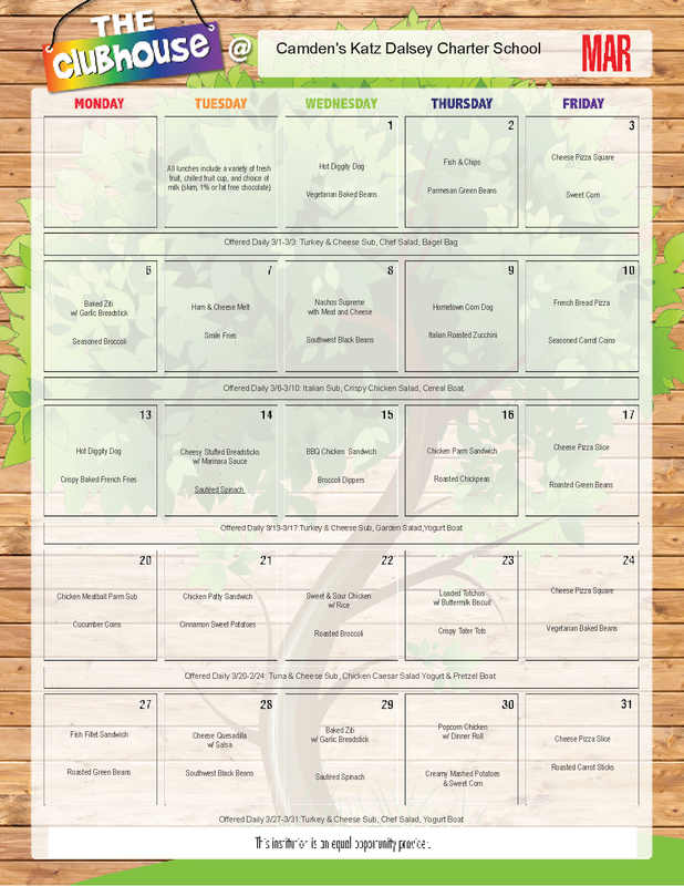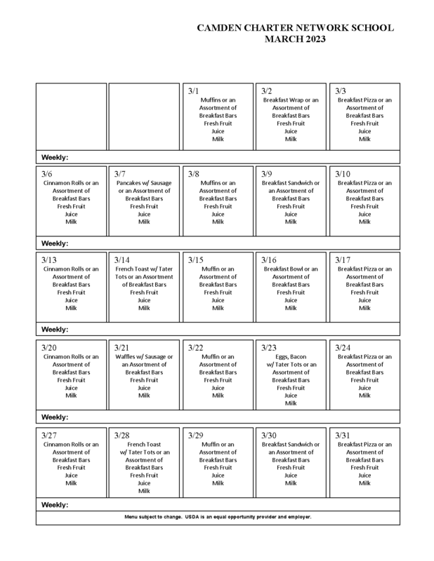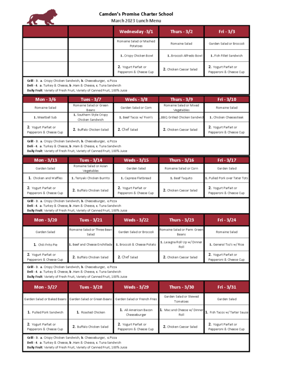 See below for March food menus