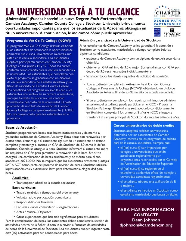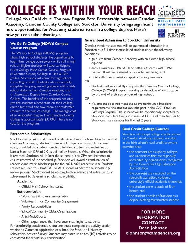 On Friday, April 30th, Camden Academy, Camden County College and Stockton University joined in a new partnership to make college more accessible to Camden Academy students.
