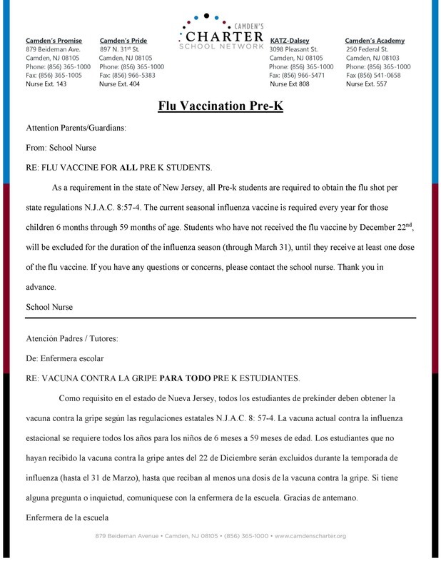 Pre-K & Kindergarten Vaccination Reminder