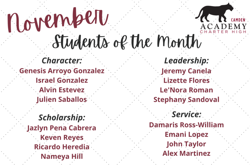 Congratulations to our Camden Academy November Students of the Month!
