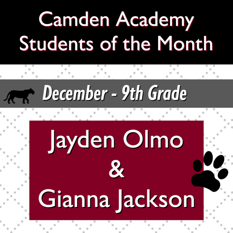 Congratulations to our Camden Academy Teacher, Staff and Students of the Month for December! Keep up the great work!