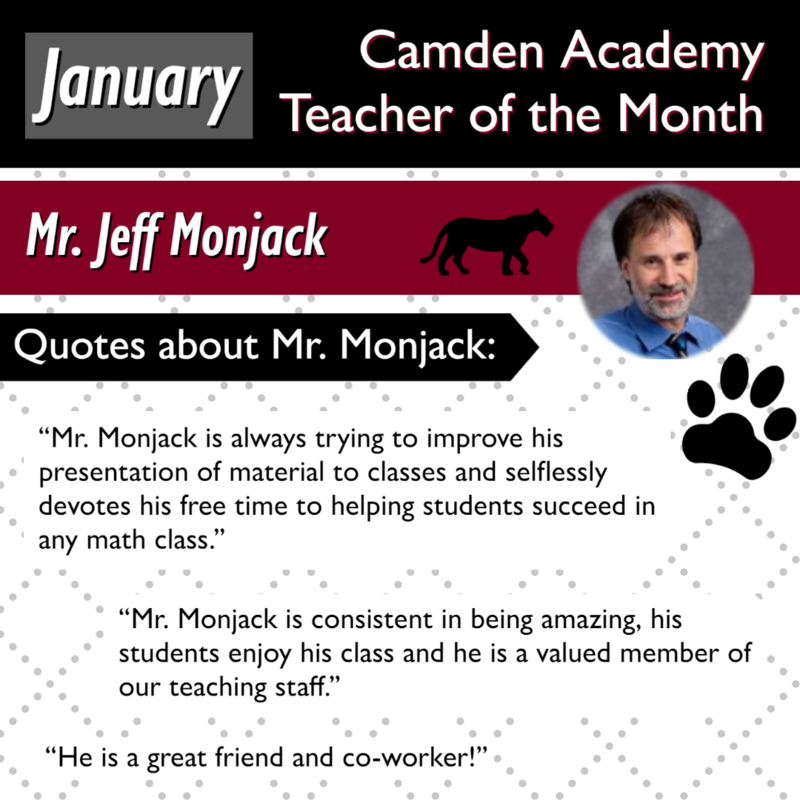 Congratulations to our Camden Academy January Teacher, Staff and Students of the month!