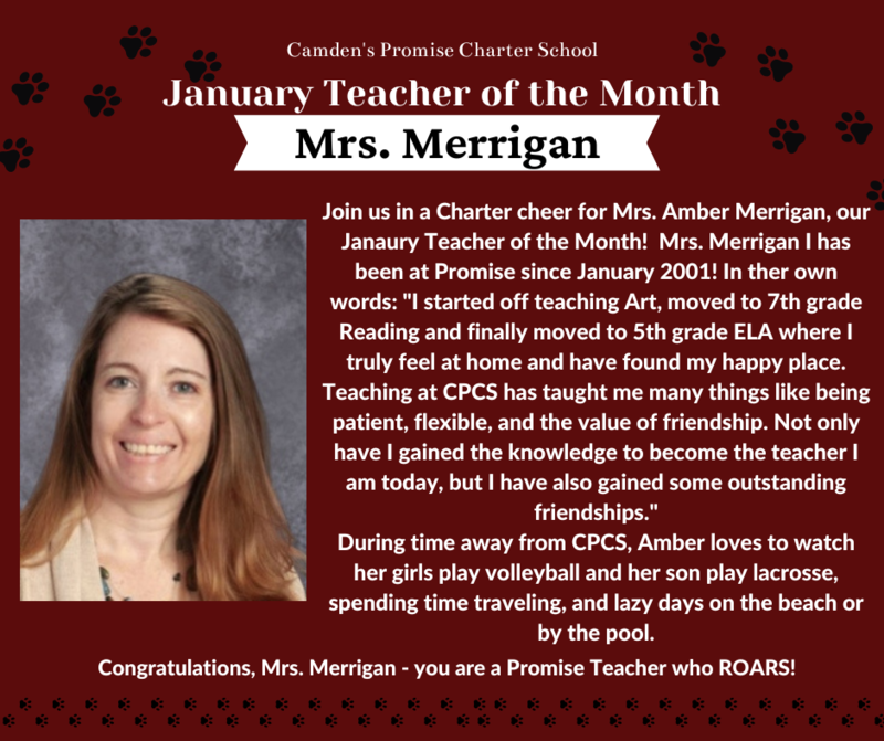 Congratulations to Mrs. Merrigan & Ms. Washington our Camden's Promise January Teacher & Staff member of the month!