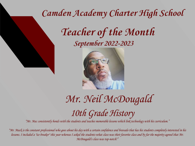 Congratulations to our Camden Academy Teacher & Students of the Month for September!