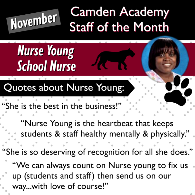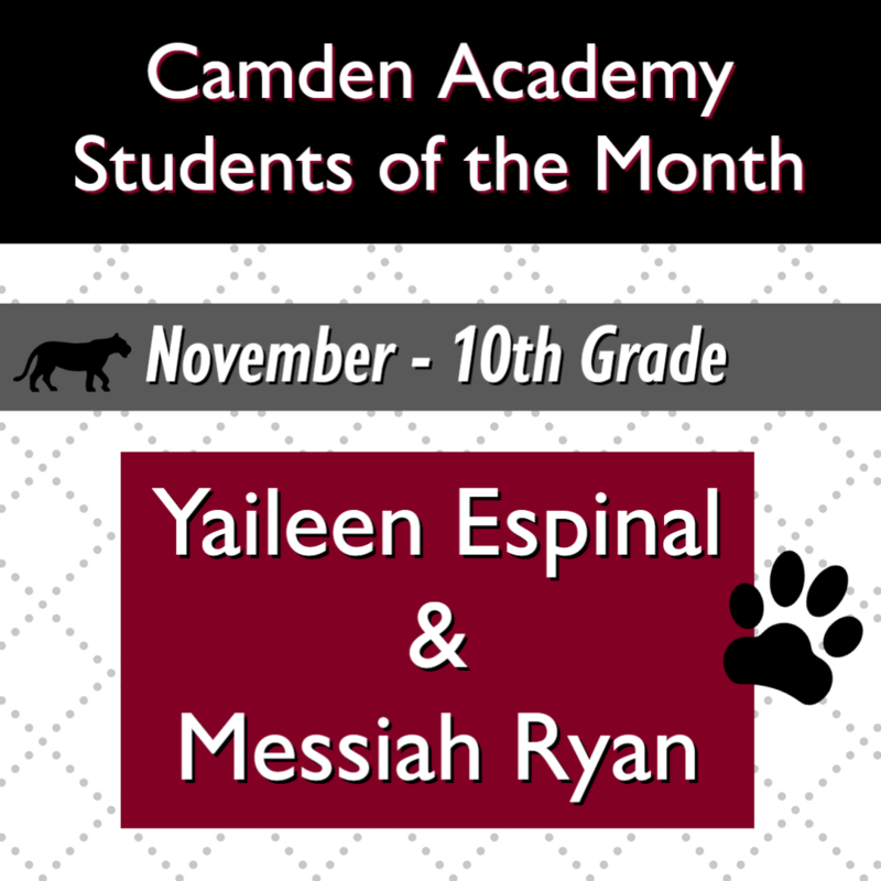 Congratulations to our Camden Academy November Staff, Teacher & Students of the Month, keep up the good work!