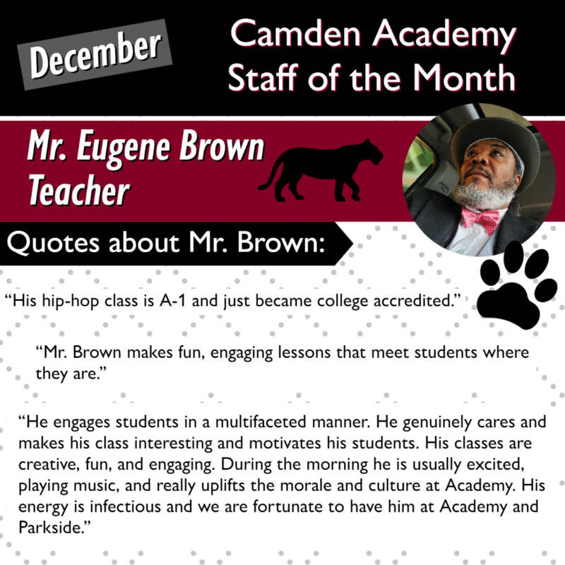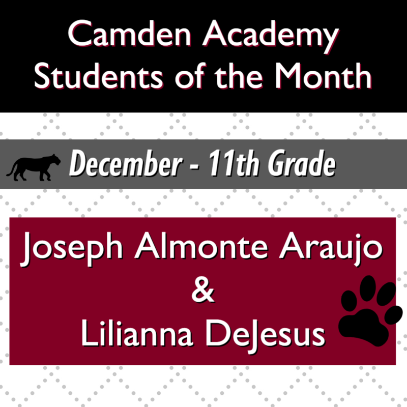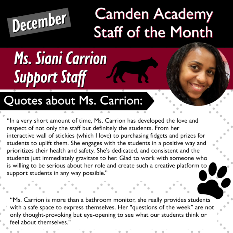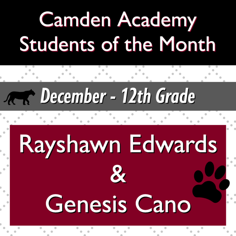 Congratulations to our Camden Academy Teacher, Staff and Students of the Month for December! Keep up the great work!