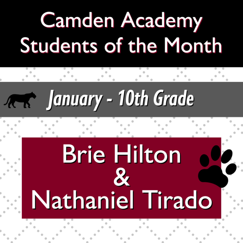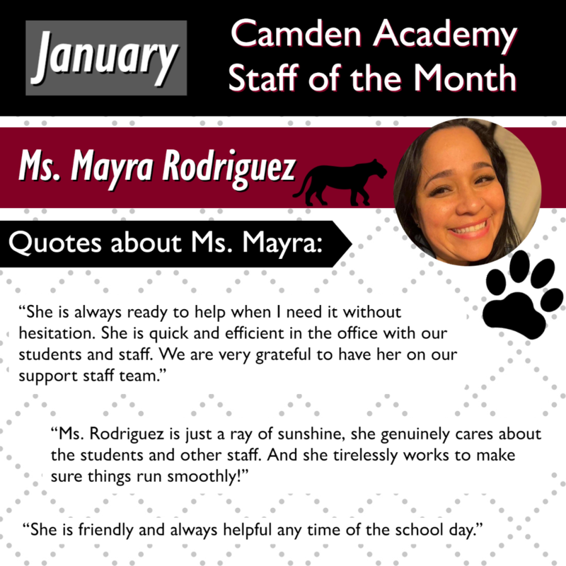Congratulations to our Camden Academy January Teacher, Staff and Students of the month!