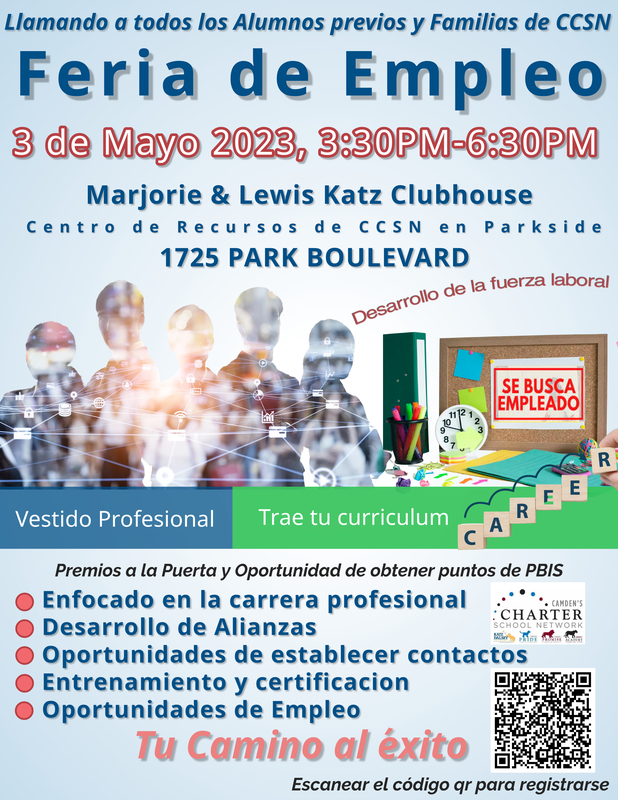 Camden’s Charter School Network is hosting a Career Fair on Wednesday, May 3rd at our Parkside Campus from 3:30-6:30pm.