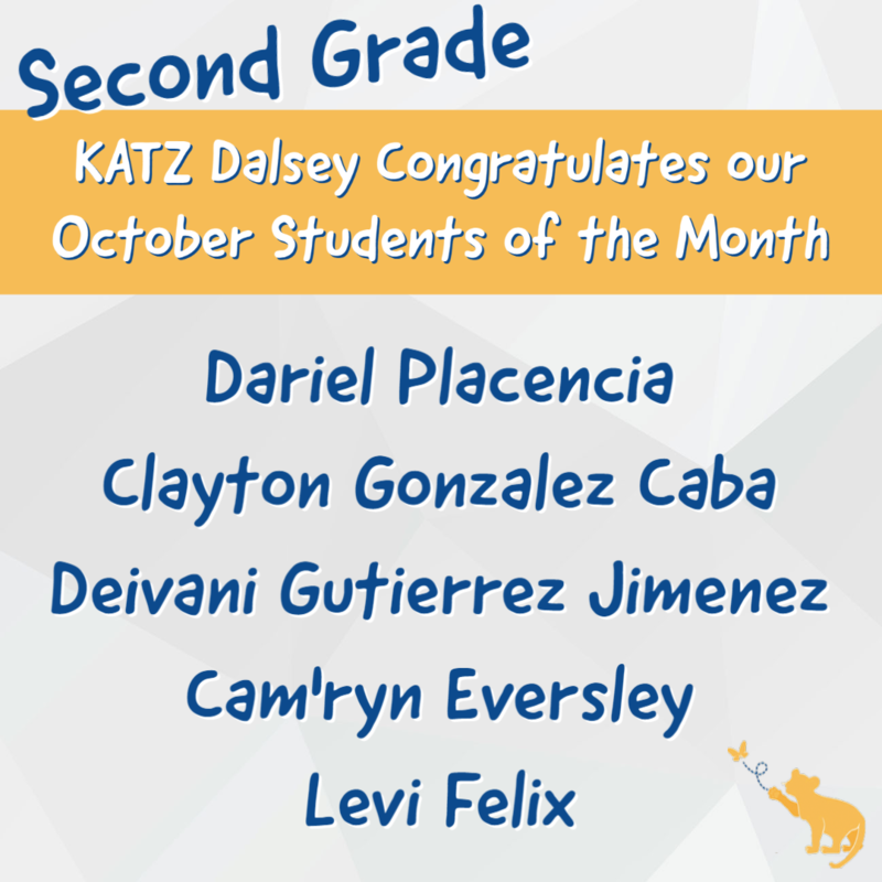 Congratulations to our KATZ Dalsey October Students of the Month! Your hard work and good attitude is recognized and appreciated!