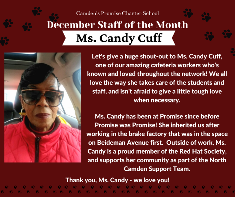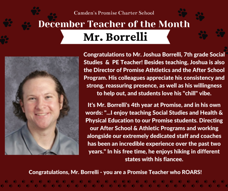 Congratulations to Mr. Borrelli & Ms. Candy, our Camden's Promise Teacher and Staff of the Month for December. Thank you for all that you do!